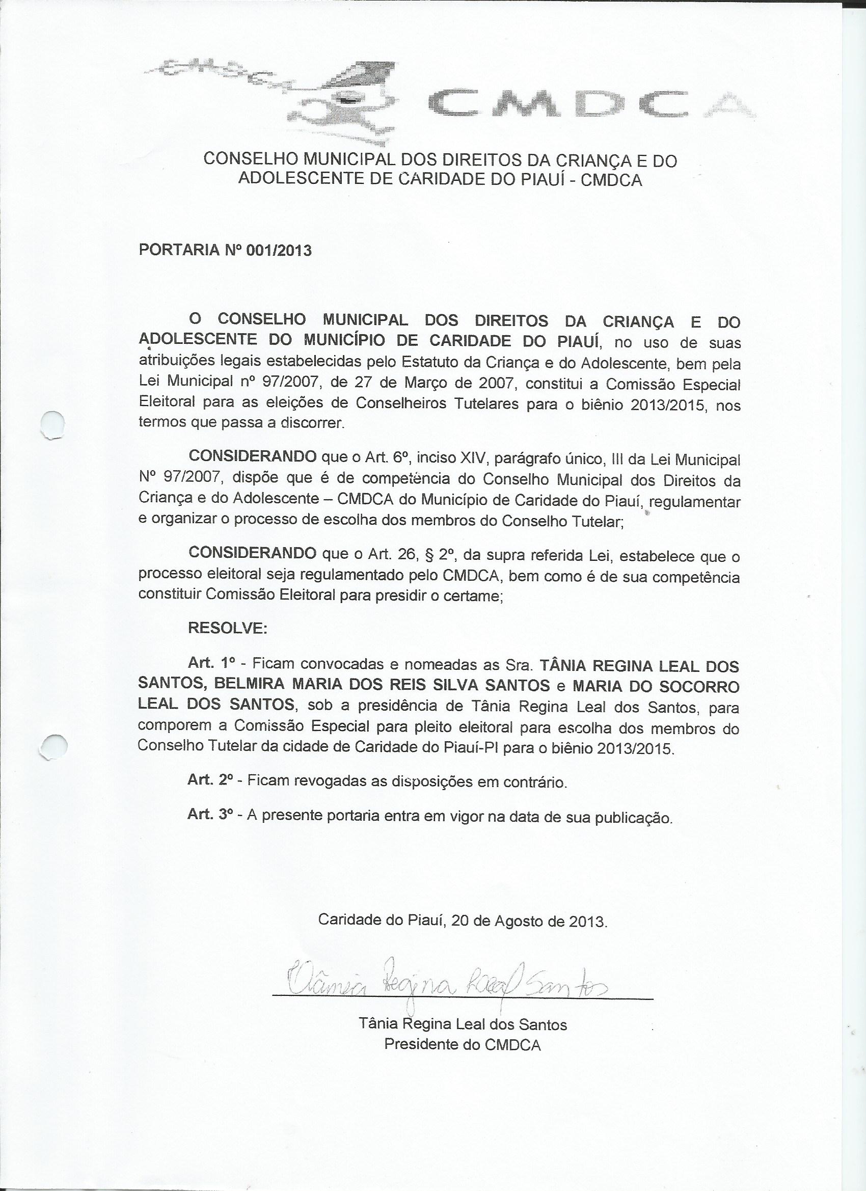 Lei publicada PORTARIA Nº 001/2013PORTARIA |