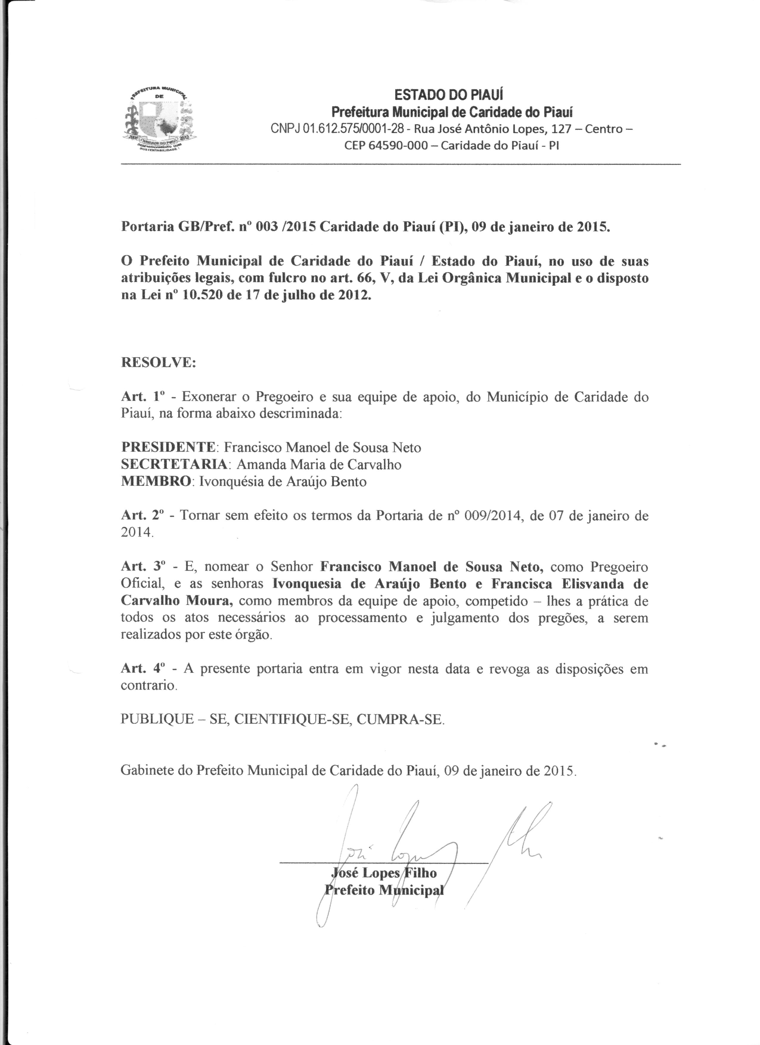 Lei publicada PORTARIA Nº 003/2015PORTARIA |