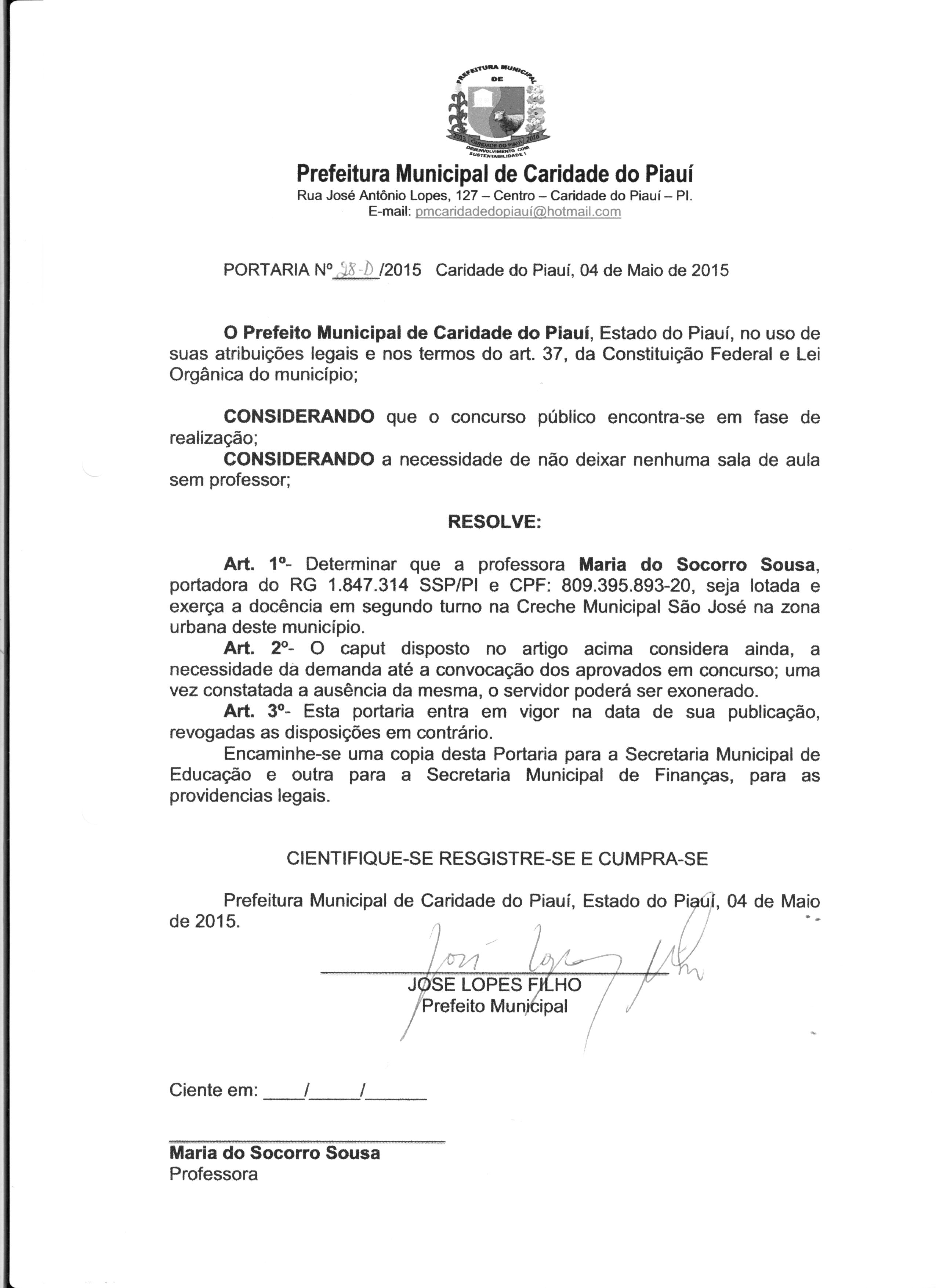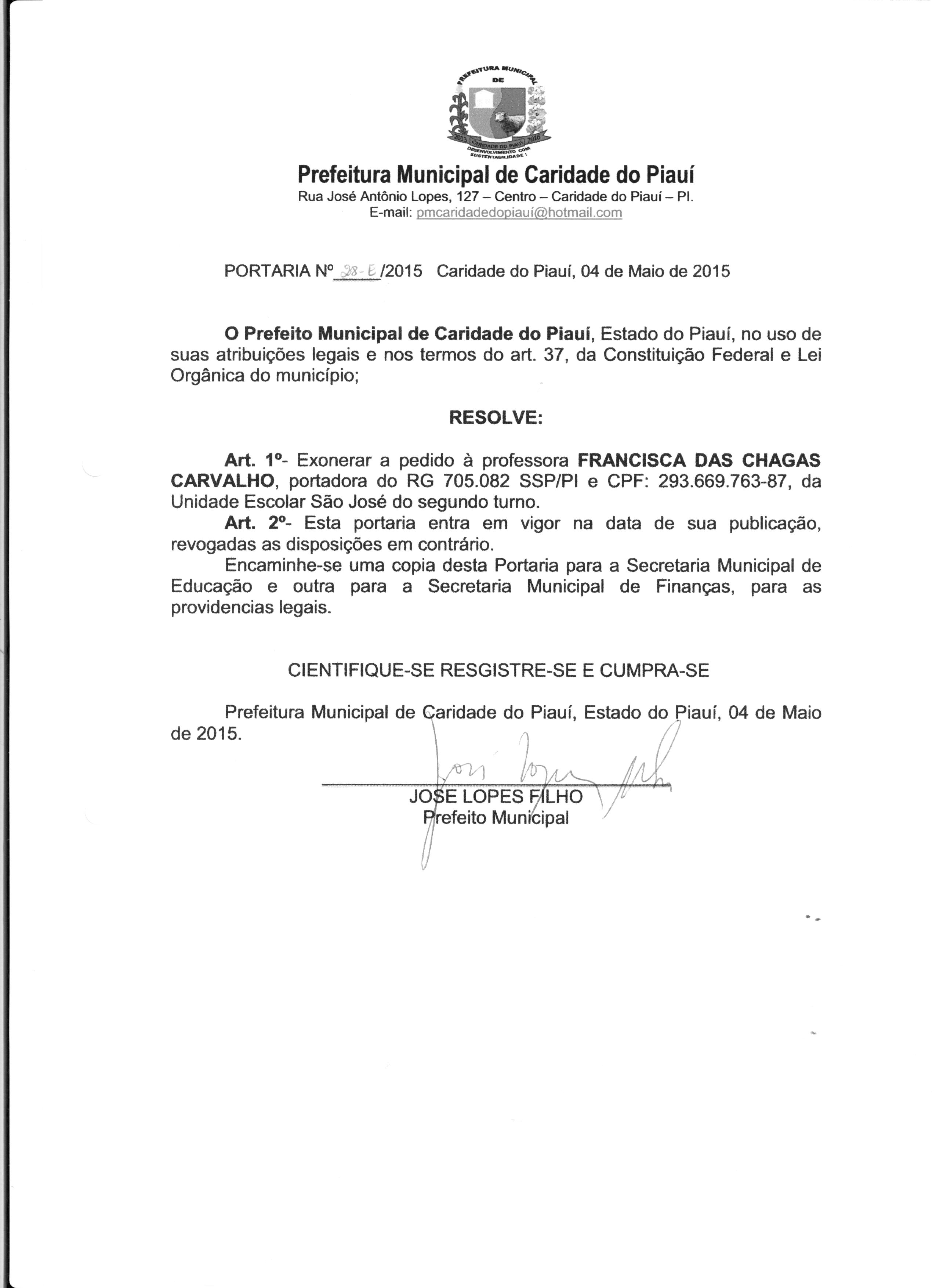 Lei publicada PORTARIA Nº 28/2015PORTARIA |