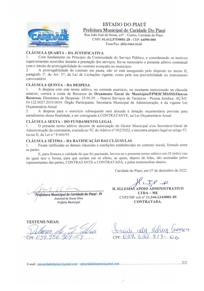 PRORROGAÇÃO E ACRESCIMO DE VALOR