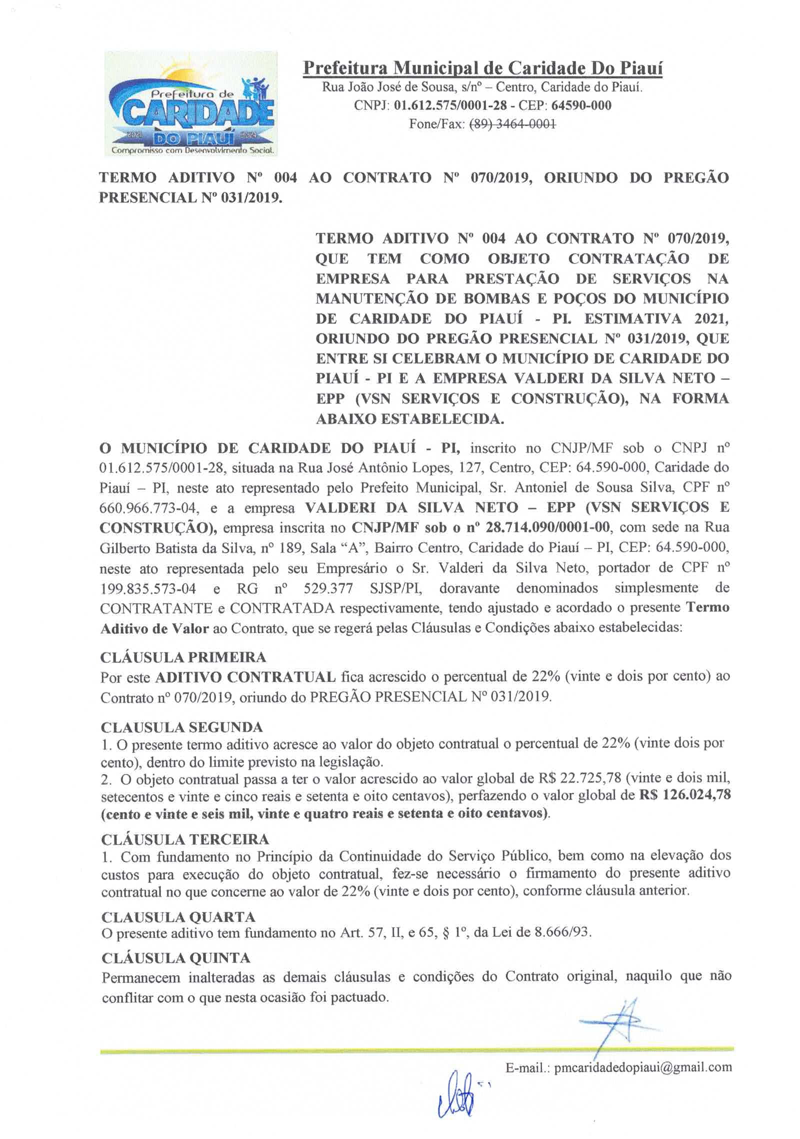 ADITIVO AO CONTRATO N° 070/2021