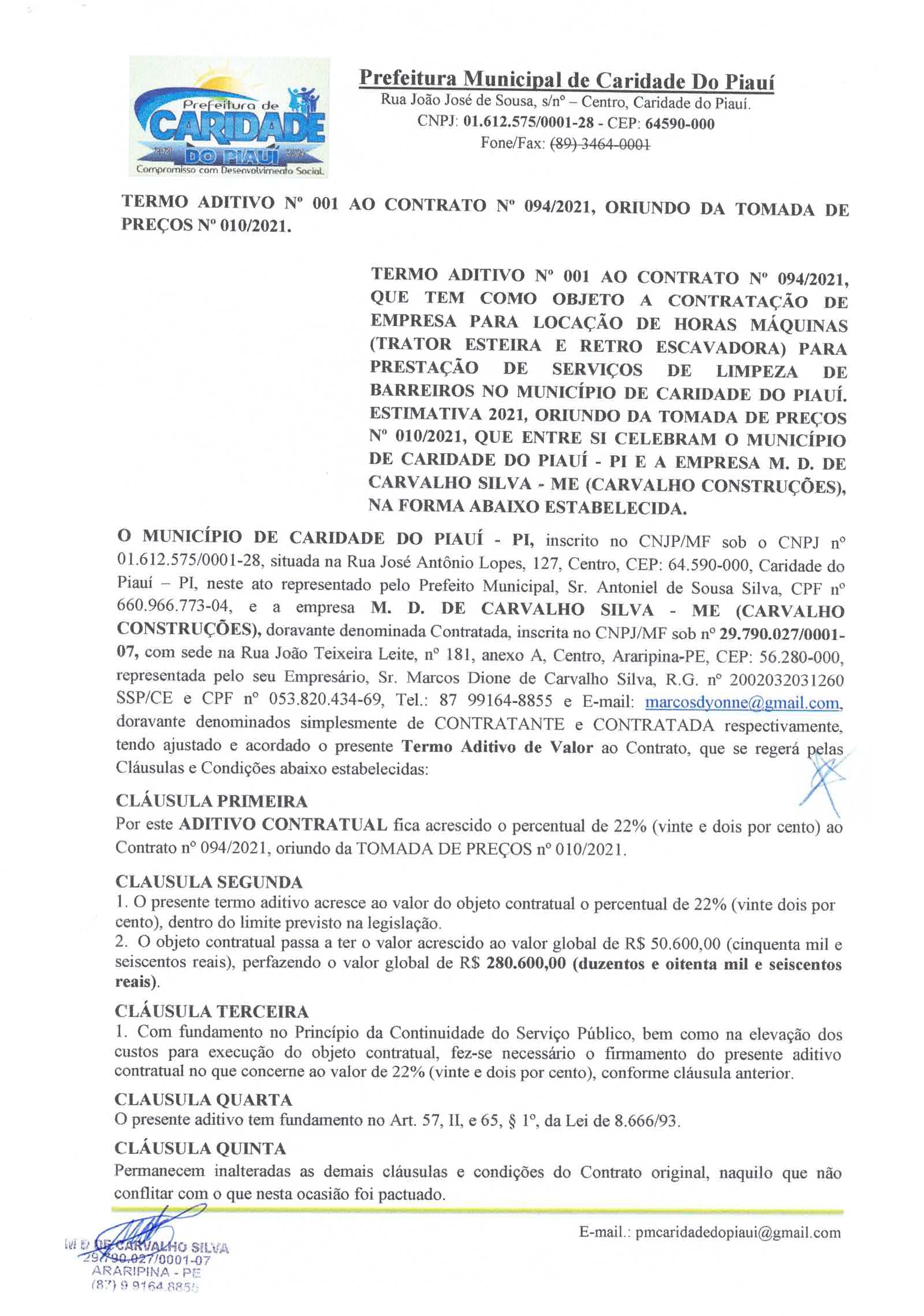 ADITIVO AO CONTRATO N° 094/2021