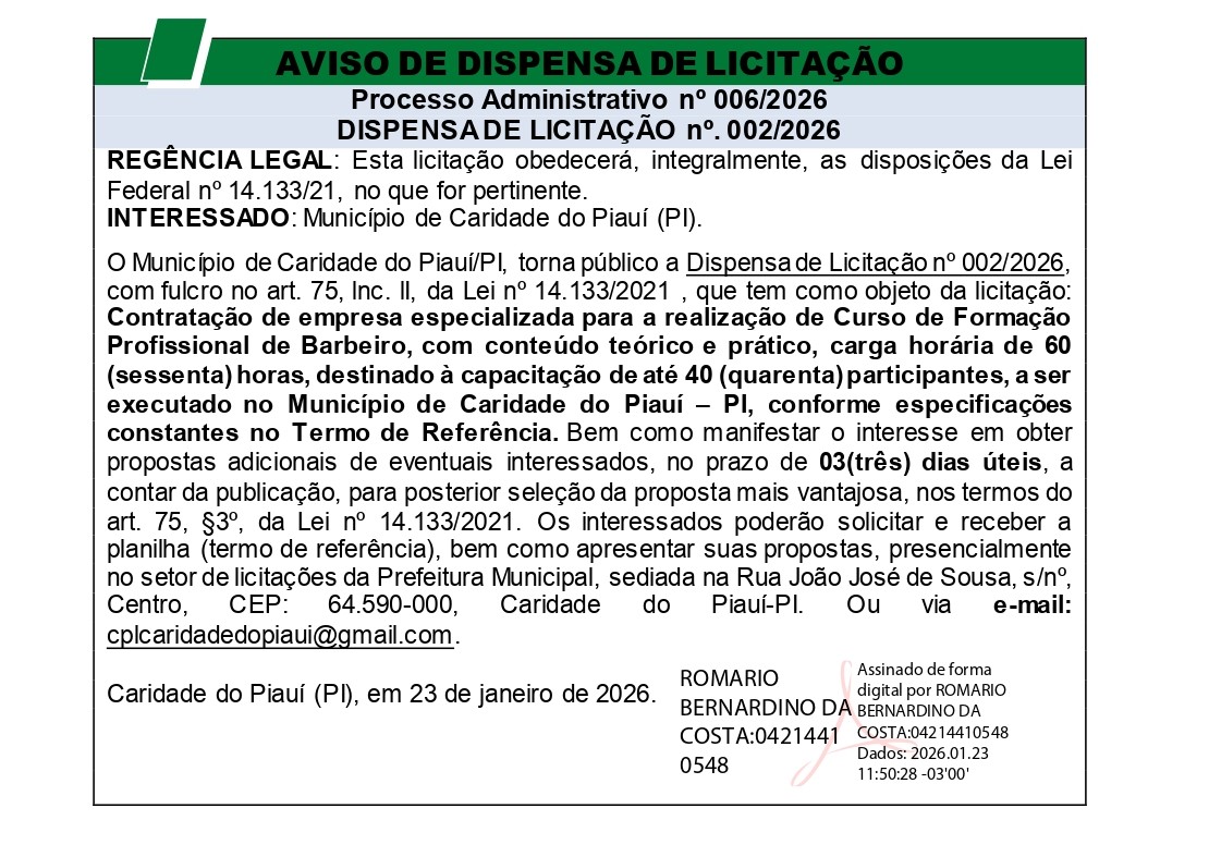 PREFEITURA MUNICIPAL DE CARIDADE DO PIAUÍ