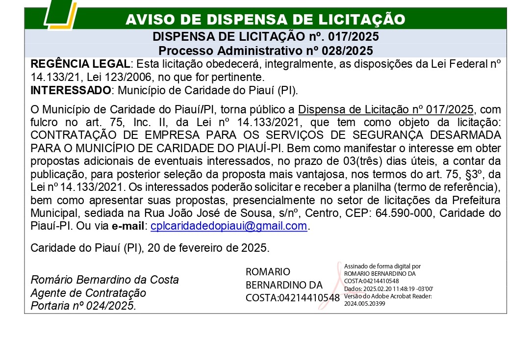 AVISO DE DISPENSA DE LICITAÇÃO N° 017/2025