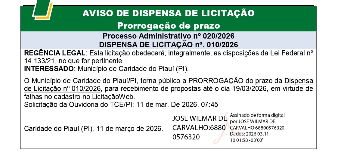 PREFEITURA MUNICIPAL DE CARIDADE DO PIAUÍ