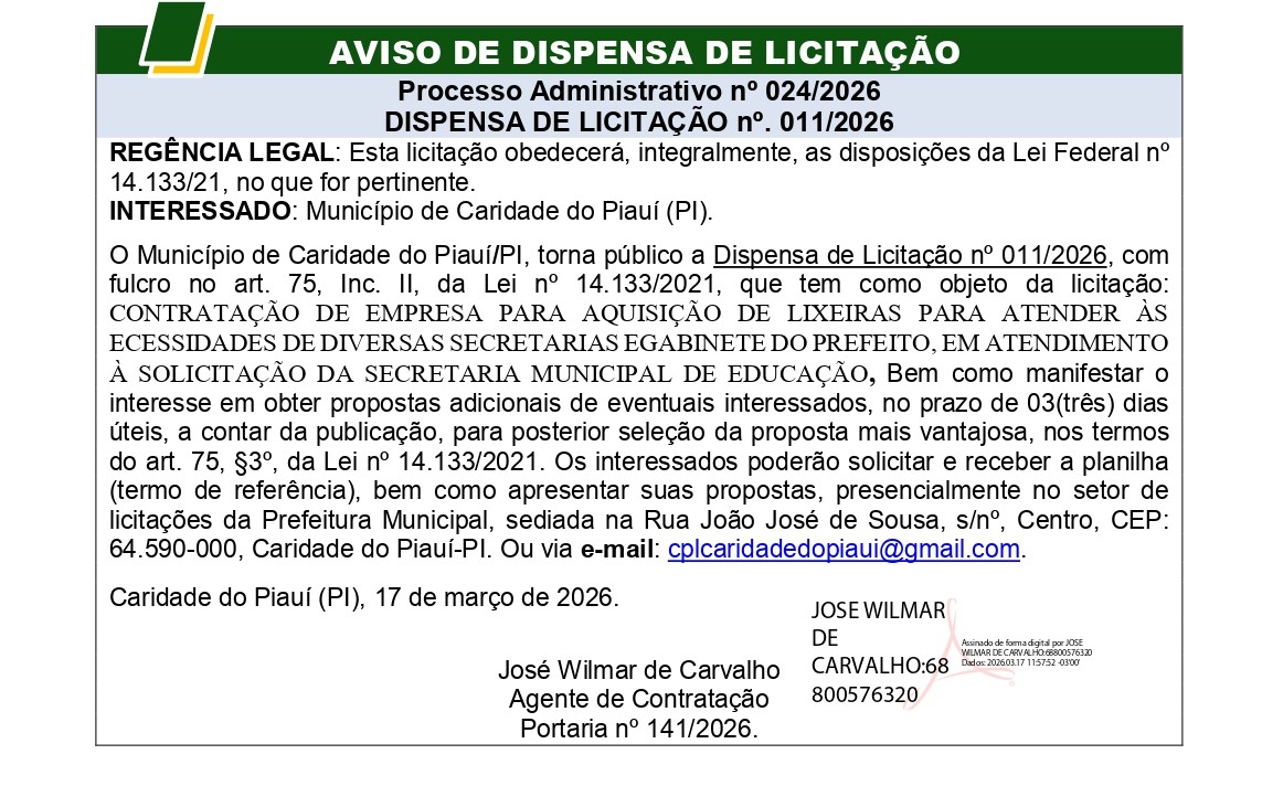 PREFEITURA MUNICIPAL DE CARIDADE DO PIAUÍ