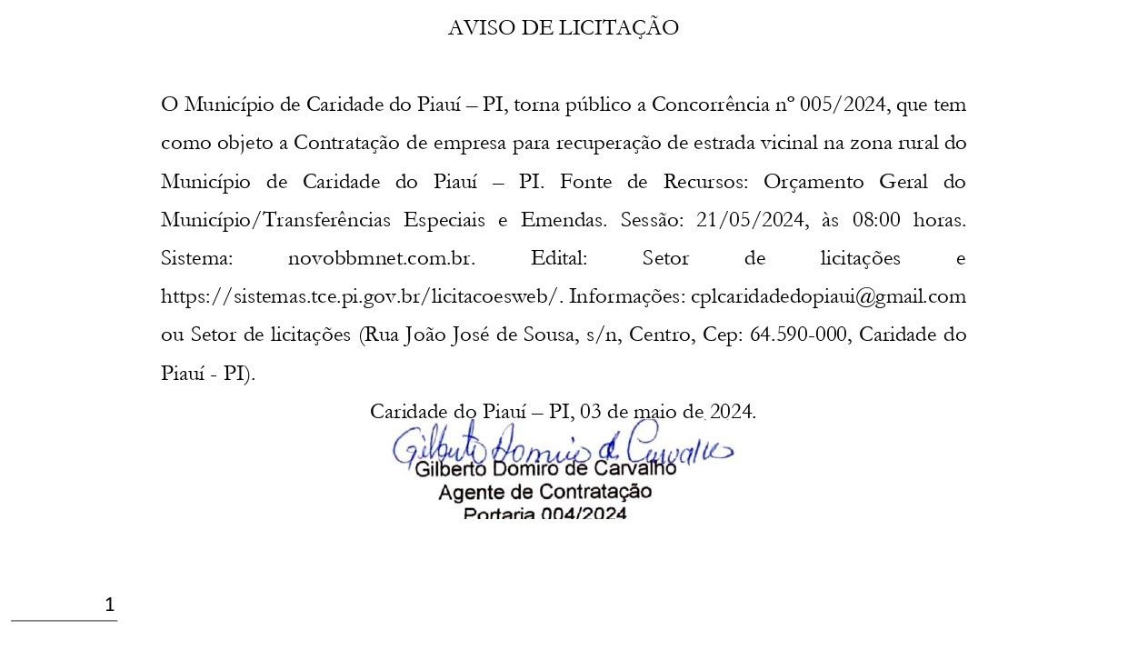 AVISO DE LICITAÇÃO CONCORRÊNCIA nº 005/2024