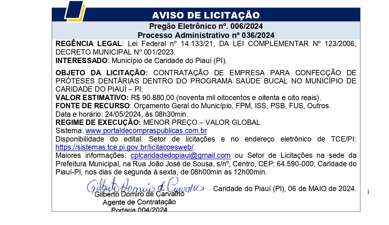 AVISO DE LICITAÇÃO PREGÃO ELETRÔNICO N. 006/2024