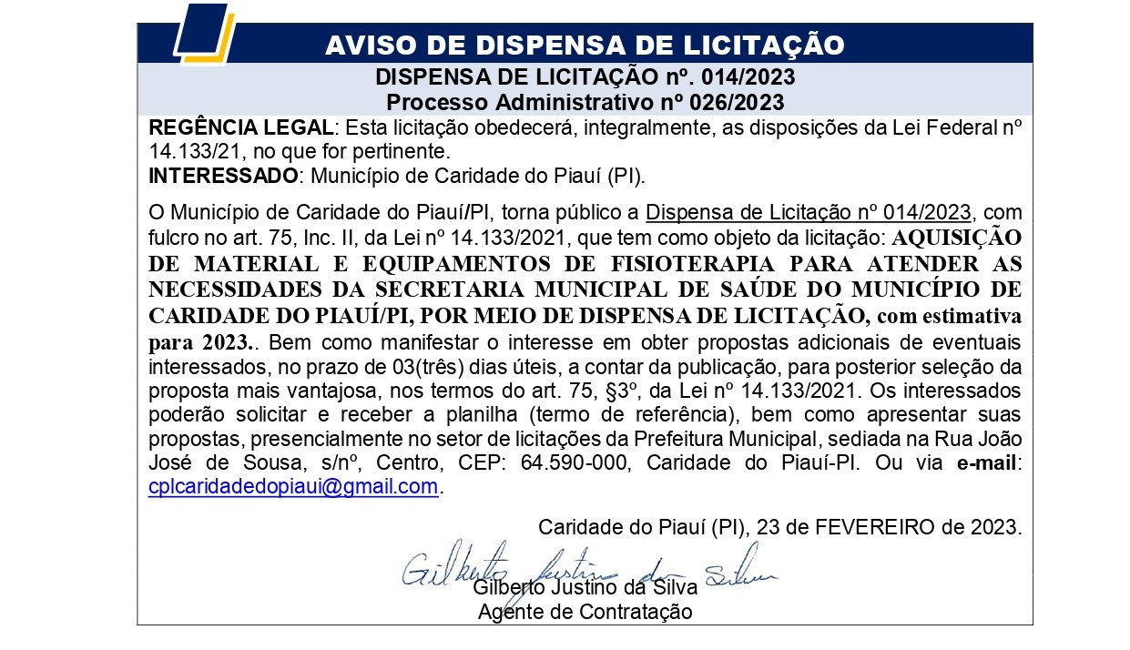 DISPENSA DE LICITAÇÃO n° 014/2023