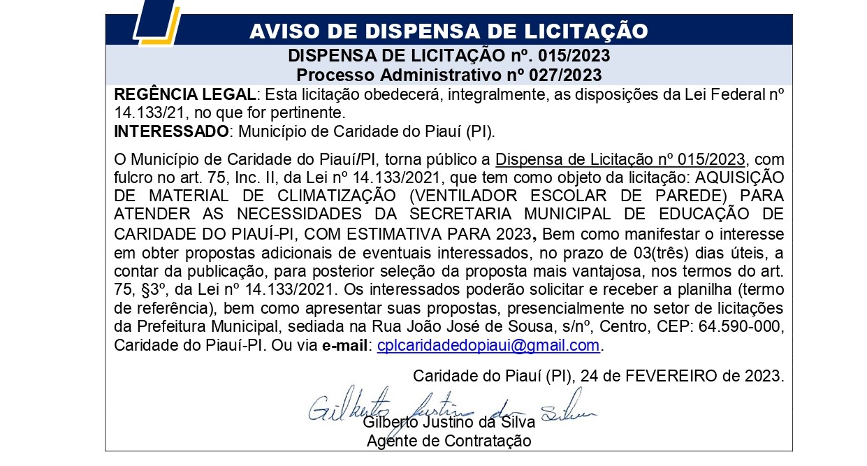 DISPENSA DE LICITAÇÃO n° 015/2023