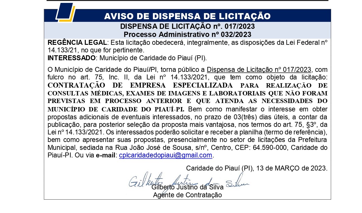 DISPENSA DE LICITAÇÃO n° 017/2023