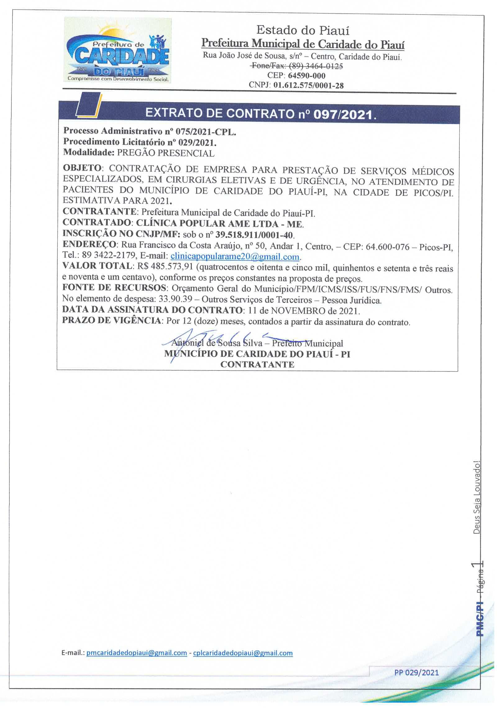 PREFEITURA MUNICIPAL DE CARIDADE DO PIAUÍ