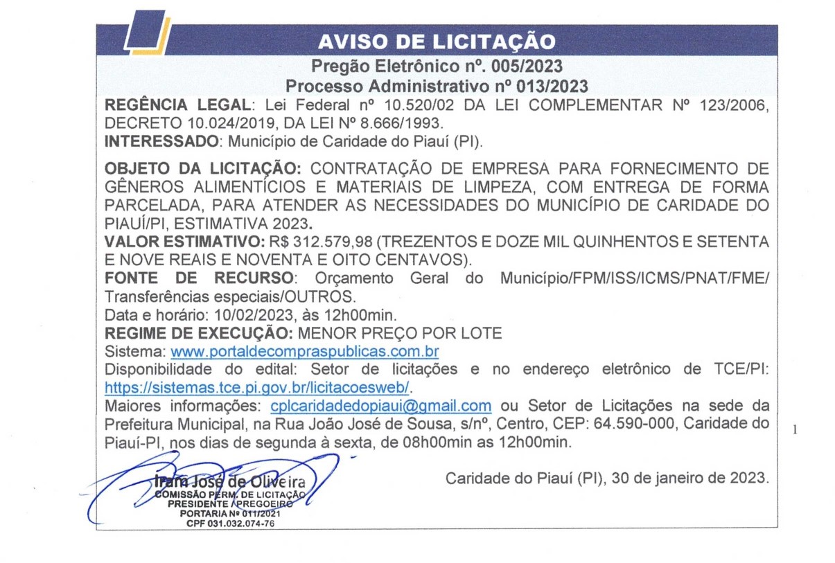 PREGÃO ELETRÔNICO N° 005/2023