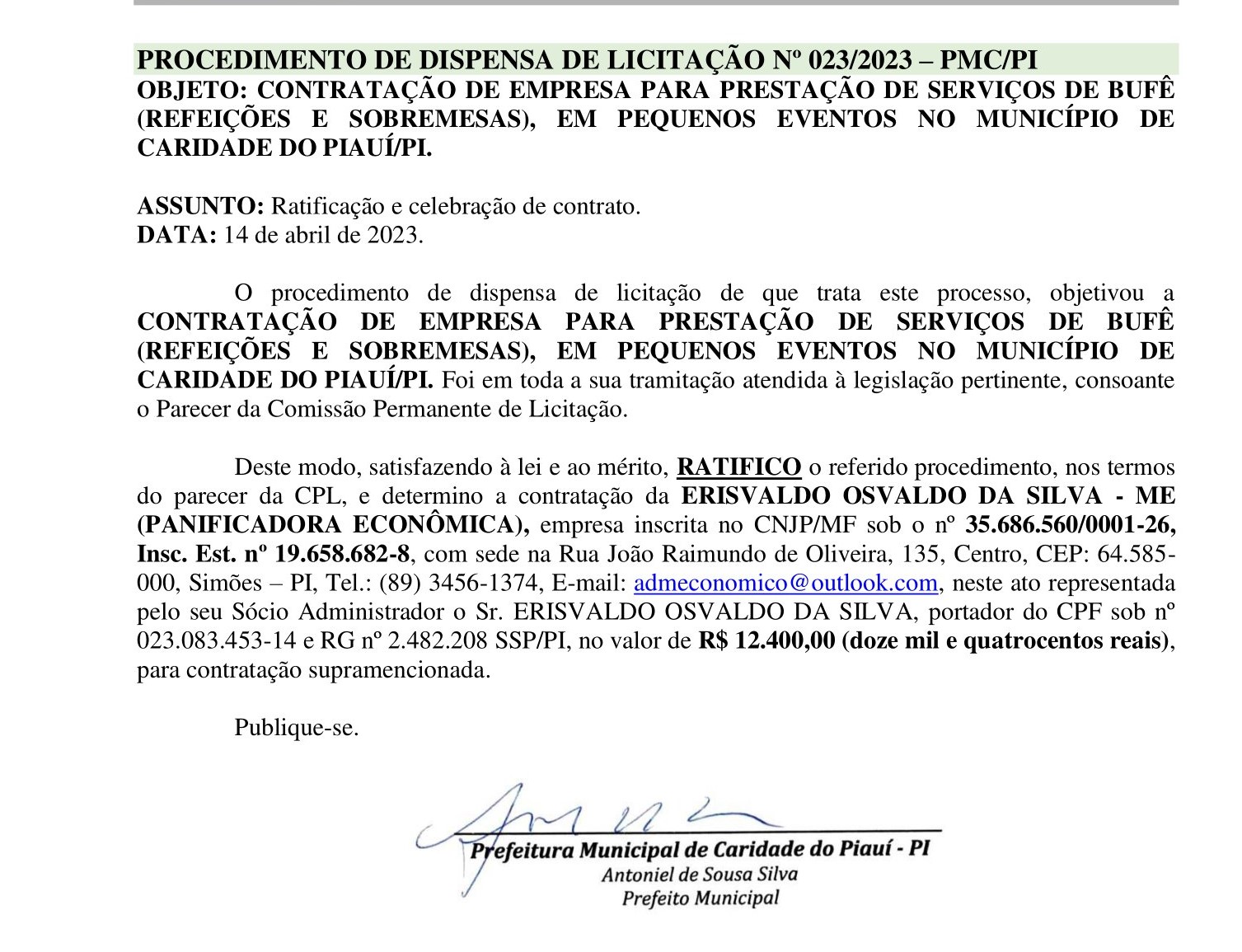 PROCEDIMENTO DE DISPENSA DE LICITAÇÃO N° 023 /2023