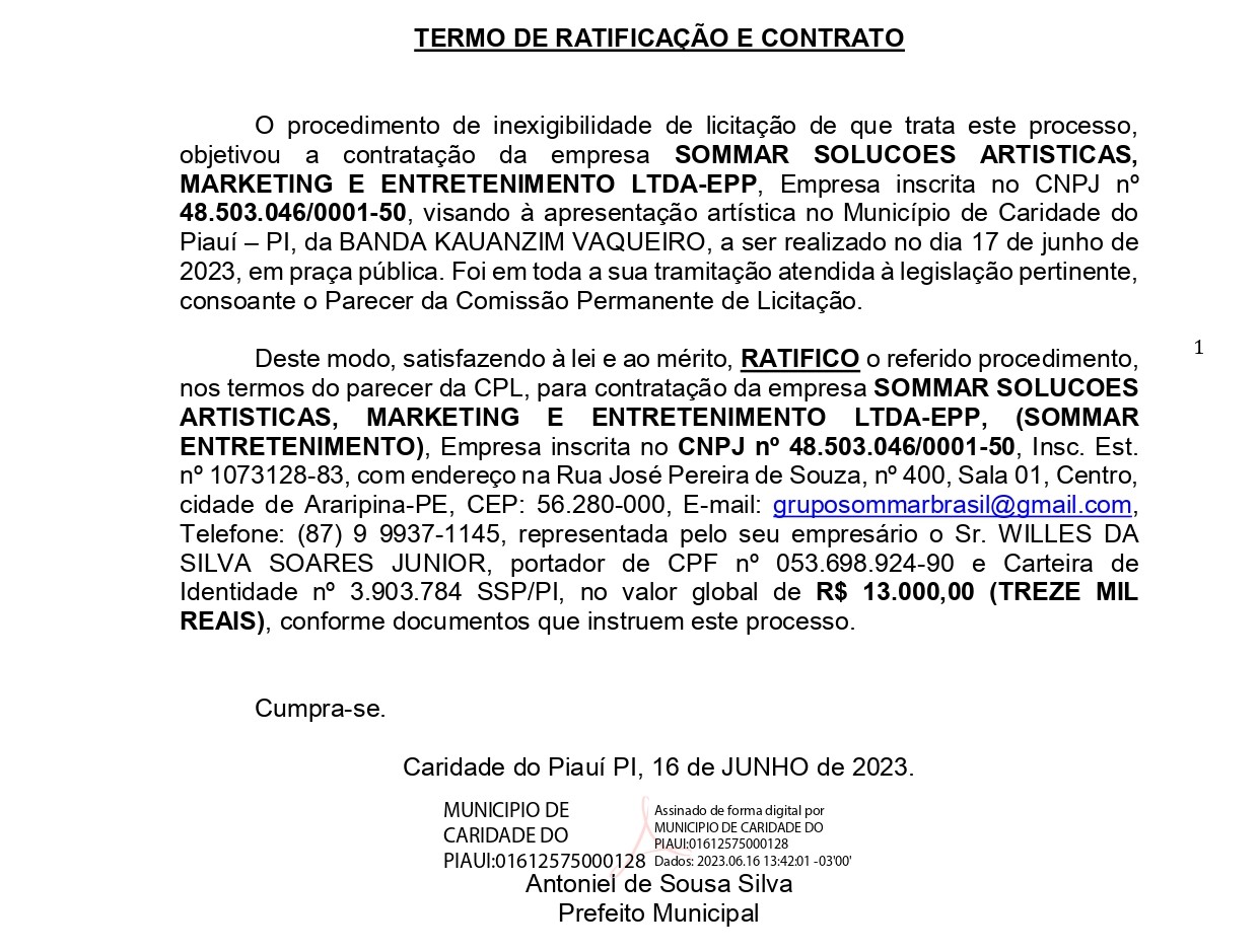 TERMO DE RATIFICAÇÃO E CONTRATO
