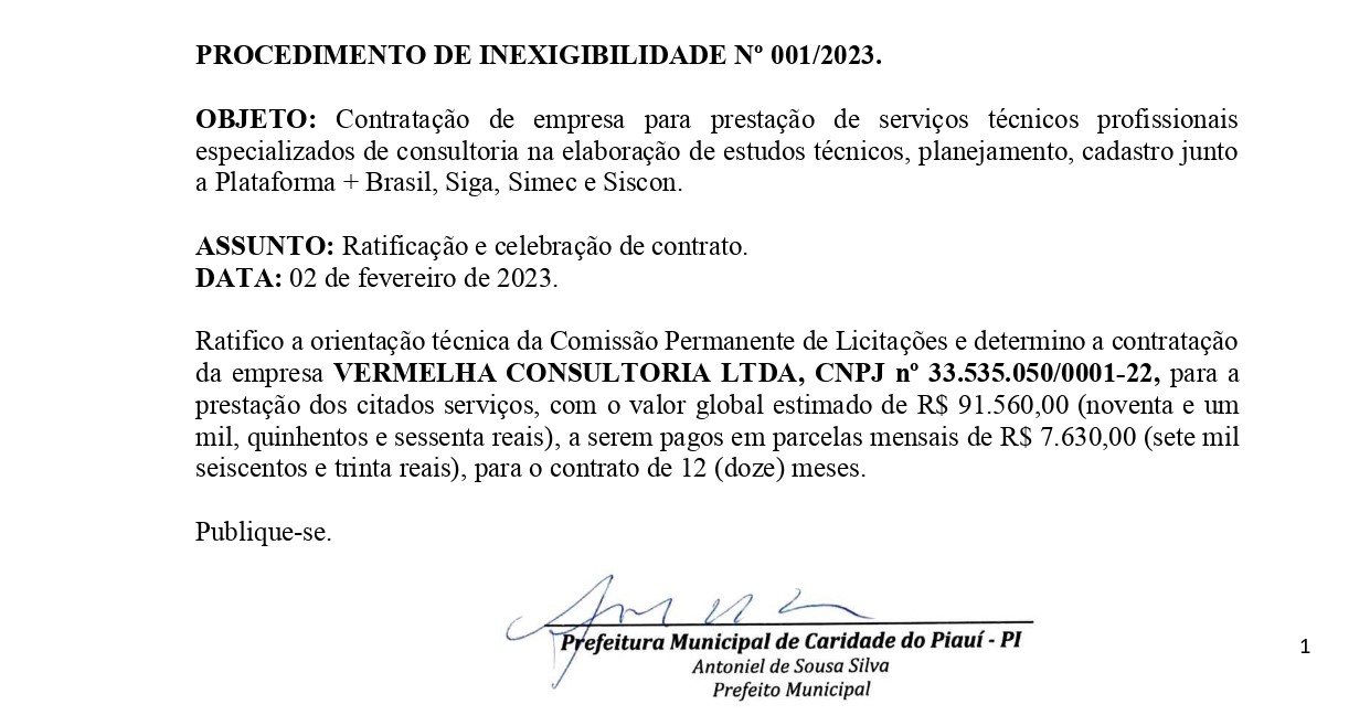 PROCEDIMENTO DE INEXIGIBILIDADE N° 001/2023.