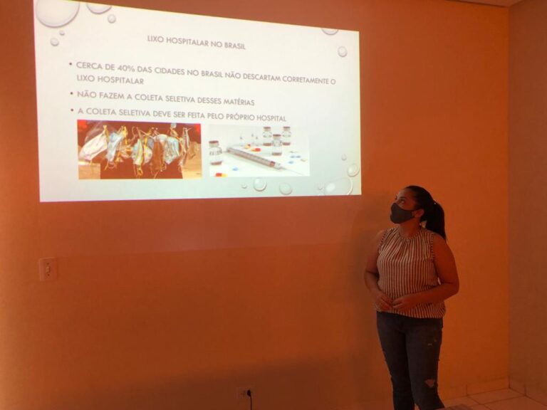 Entre outros pontos, a palestrante destacou sobre o aumento no descarte de resíduos hospitalares, devido à pandemia, e a necessidade de melhorias nas práticas de descarte e processamento dos materiais.