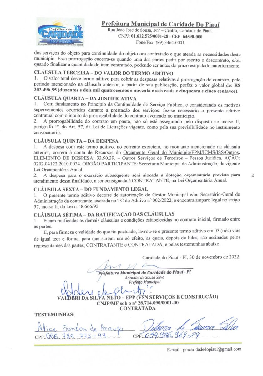 TERMO ADITIVO AO CONTRATO N° 016/2021