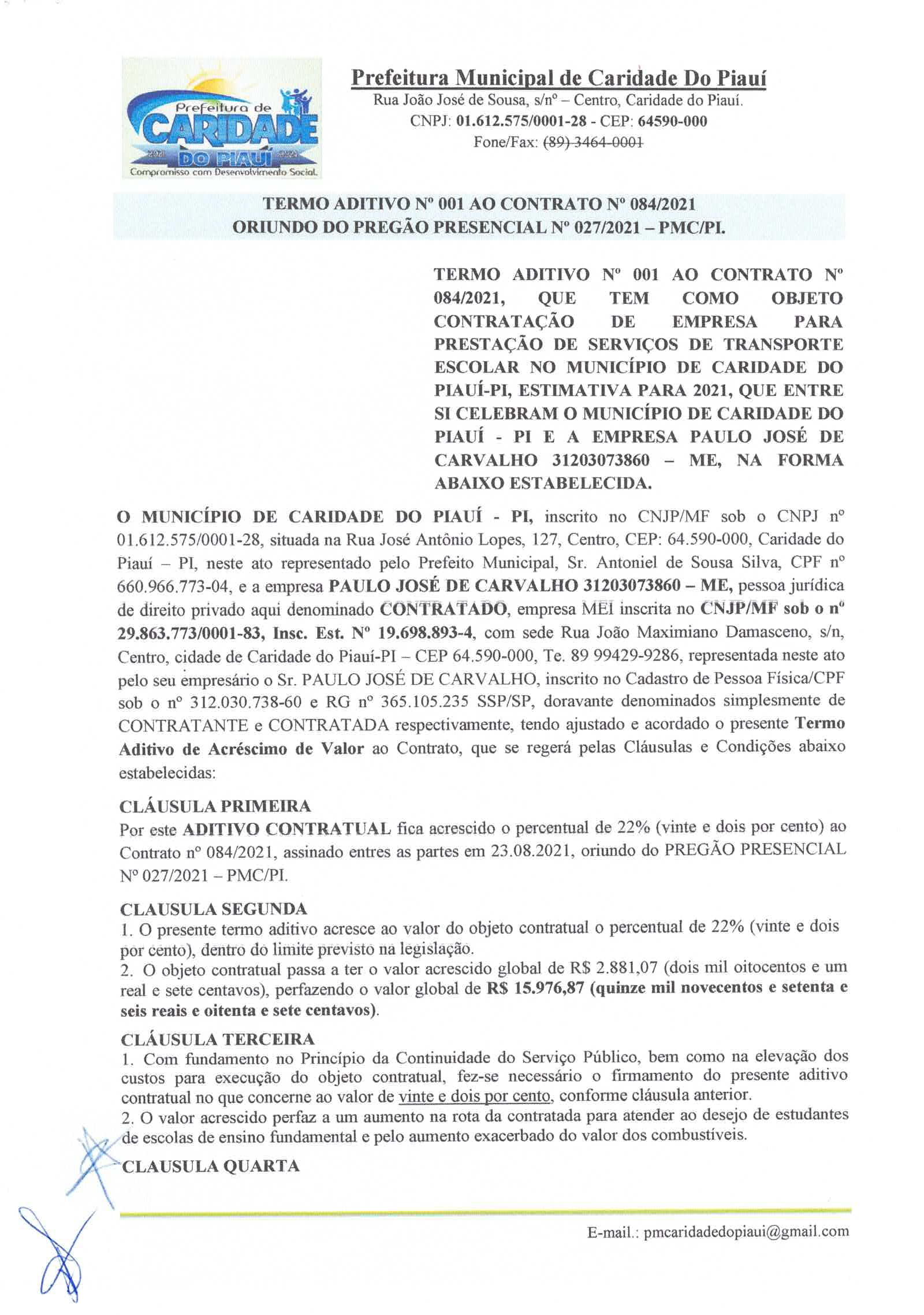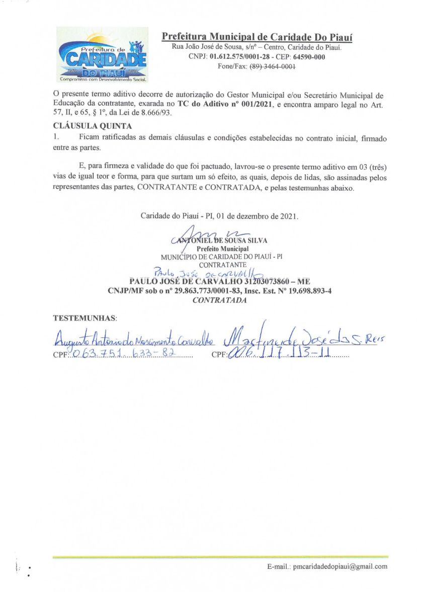 TERMO ADITIVO N° 001 AO CONTRATO N° 081/2021